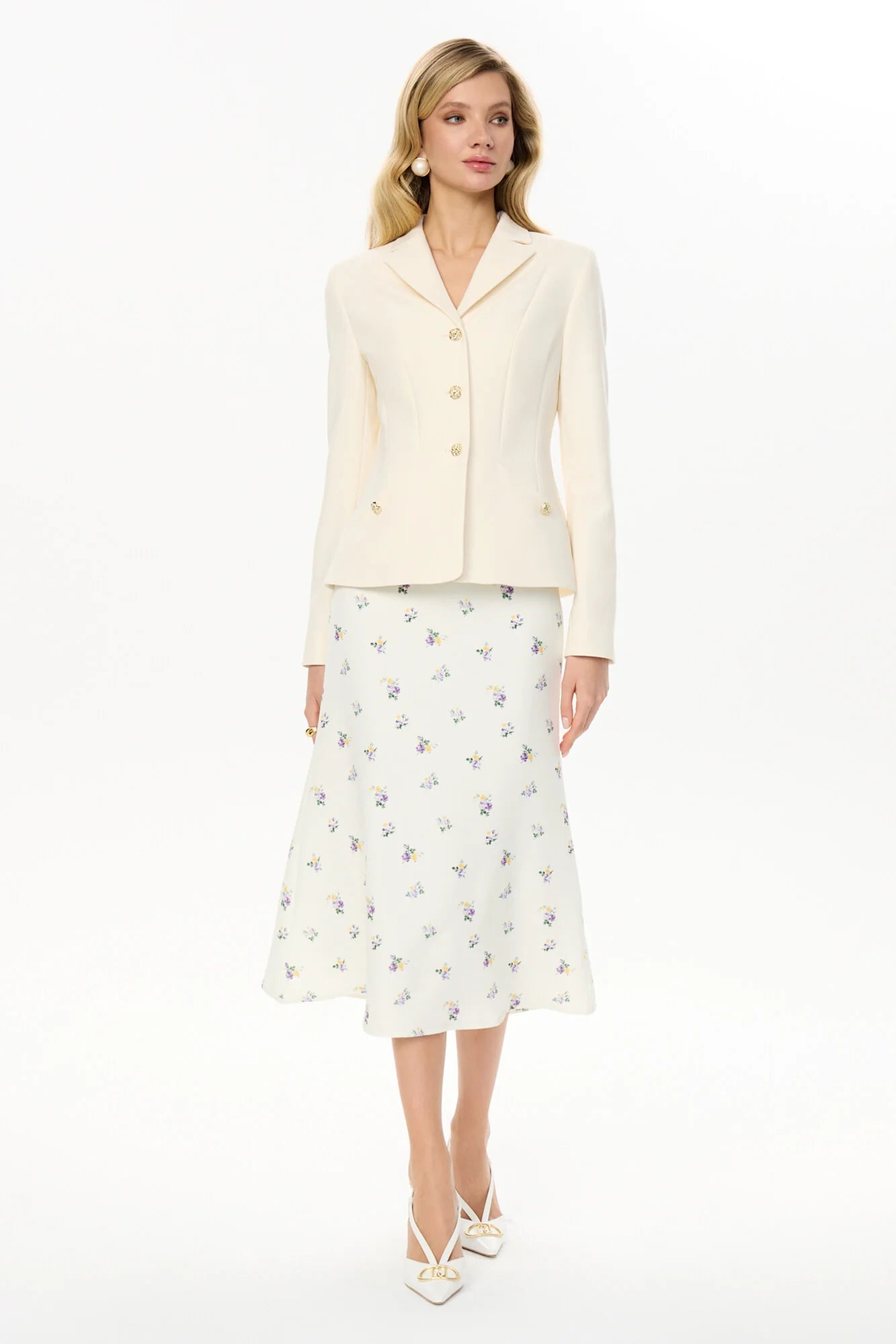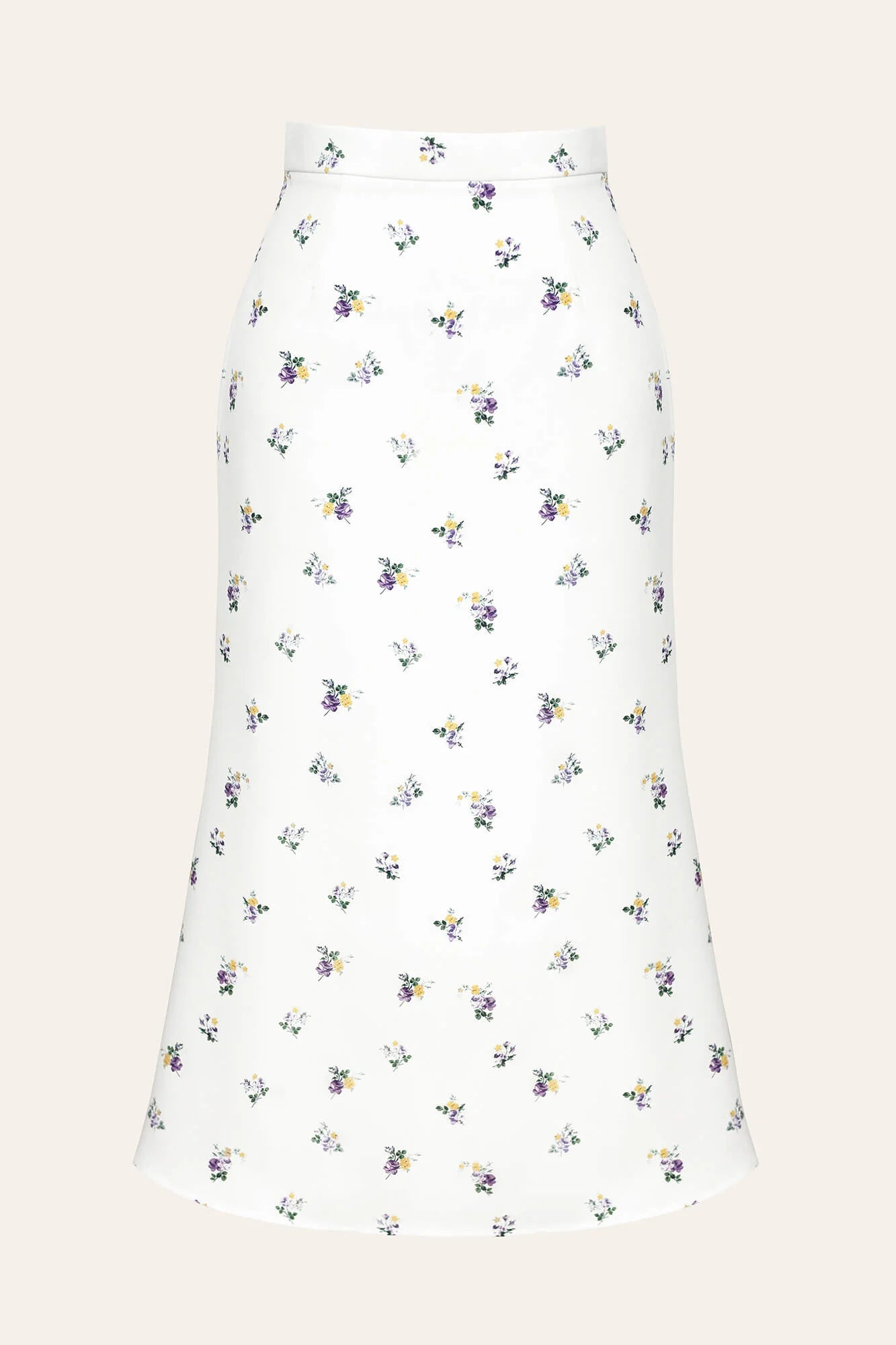 The godet midi skirt is an elegant everyday basic option. The fitted silhouette expands downwards, hugs the hips and creates beautiful flows and shimmers while walking. The fine minimalist print adds a romantic mood to the look. The skirt zips up with a hidden zipper to keep up with the smooth surface of the fabric. To complete the look, match it with a top from the new collection or a jumper.