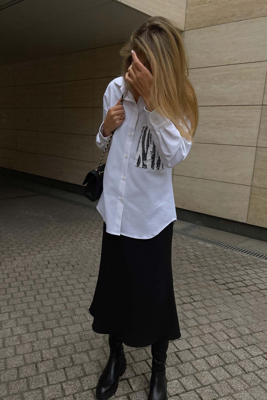 is easy to mix with any skirts or simple jeans, that makes this garment to be a day to night outfit. The front pocket is embroidered with sequins, creating a spectacular image.